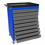 Тележка инструментальная PROFFI 950.9  комплектуется 9 выдвижными ящиками. Тележки изготовлены высотой 950 мм. Размеры: 950x660x470 мм. Масса: 57,5 кг. Грузоподъемность ящиков до 30 кг.