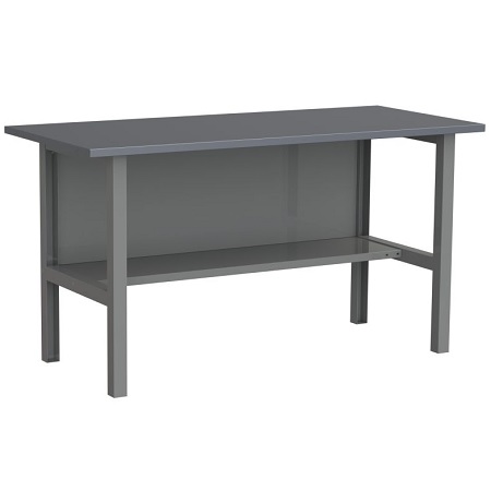 Однотумбовый. Допустимая нагрузка на столешницу 750 кг. Опорные элементы выполнены сварными из холоднокатаной стали. Для выполнения сборочных, ремонтных, слесарных, монтажных и других видов работ на производстве, в сервисных центрах, мастерских, гаражах, а также для обучения технологии в учебных заведениях. Комплектуется полкой-стенкой, расположенной под столешницей для удобного размещения габаритного инструмента и оснастки. Размеры верстака: 855x1596x696 мм. Вес: 68 кг. Поставляется в 4 комплектациях на выбор.