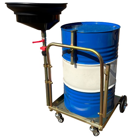Установка для слива/сбора «отработки», антифриза в бочки 60÷220л. на подкатной анодированной тележке. Для любых транспортных средств, вывешенных на подъёмнике. Высота регулируется зажимом 1450÷2050мм. Фиксатор бочки на тележке. Сетка для улавливания мелких деталей, фильтров и предотвращения разбрызгивания. Поворотная воронка 360⁰ со смещённым сливным отверстием. Шаровой кран для контроля слива. Обрезиненные колёса большого диаметра для не ровных полов. Контроль заполняемости бочки через отверстие для воздуха.