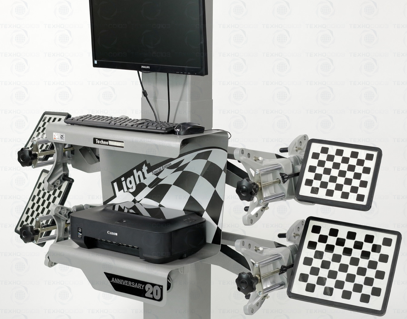 Компактный и мощный компьютер практически не занимает место. Предустановлена современная операционная система Windows. Предустановлено программное обеспечение "Техно Вектор" и база данных параметров автомобилей. Пульт дистанционного управления имеет эргономичную форму и позволяет уверенно управлять компьютером на расстоянии до 10 м. Пленочная клавиатура, кнопки которой, дублируют функциональные клавиши основной панели управления. Связь между компьютером и пультом осуществляется по радиоканалу 2.4 ГГц.