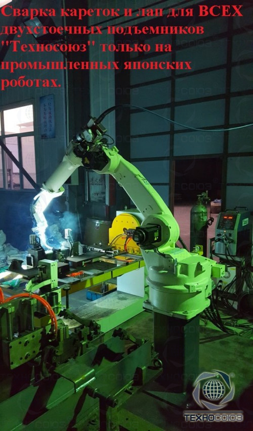- Съем лап с поворотных фиксаторов автоматический. При достижении кареткой крайнего нижнего положения лапы подъемника автоматически снимаются с поворотных фиксаторов.