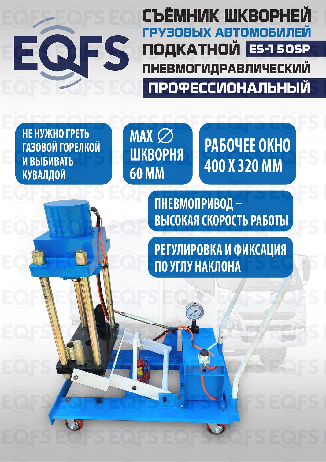 Сокращает время ремонта. Позволяет работать под разными углами 1 человеку. Мобильный. Для выпрессовки шкворней из поворотной цапфы погрузчиков, тракторов, строительной техники, коммерческих и грузовых авто отечественного и импортного производства: MAN, MERCEDES, SCANIA, VOLVO, Корейские и Китайские автомобили. Можно использовать при выездных работах. Пневмогидравлический привод - требуется подключение сжатого воздуха. Рабочее окно 400x320 мм. Усилие 150 тонн.