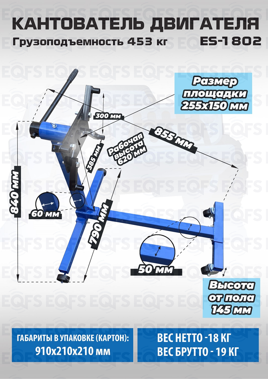 Грузоподъемность стенда составляет 453 кг, при габаритной длине (вылете от монтажной площадки) закрепляемого агрегата, не более 0,4 м.
