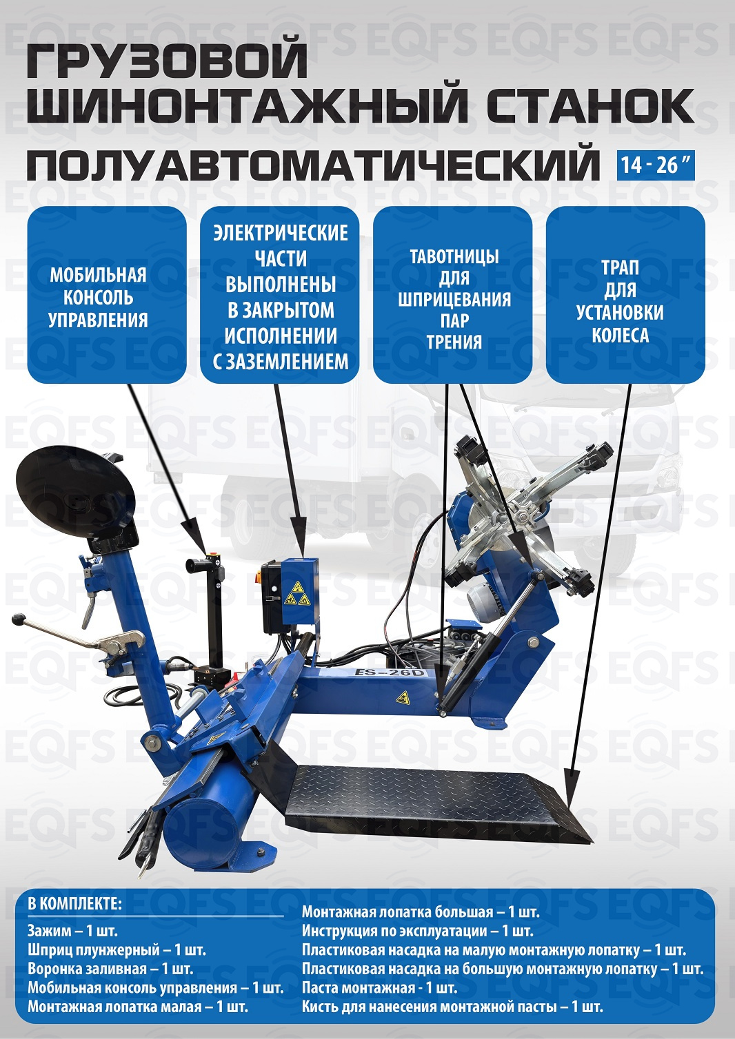 Комплект ES-26D Шиномонтажный стенд (380 В) полуавтомат+ES-850 Балансировочный станок 380V