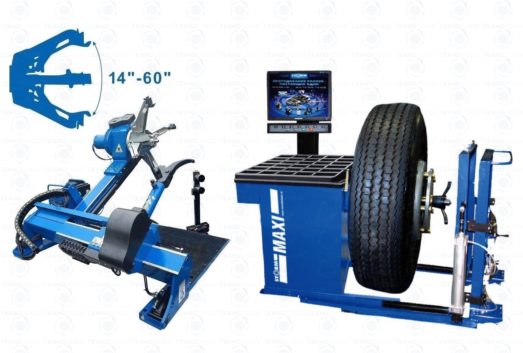 Комплект TS-56 Шиномонтажный стенд грузовой 14-60”,+ЛС-32 MAXY PM Балансировочный станок монитор