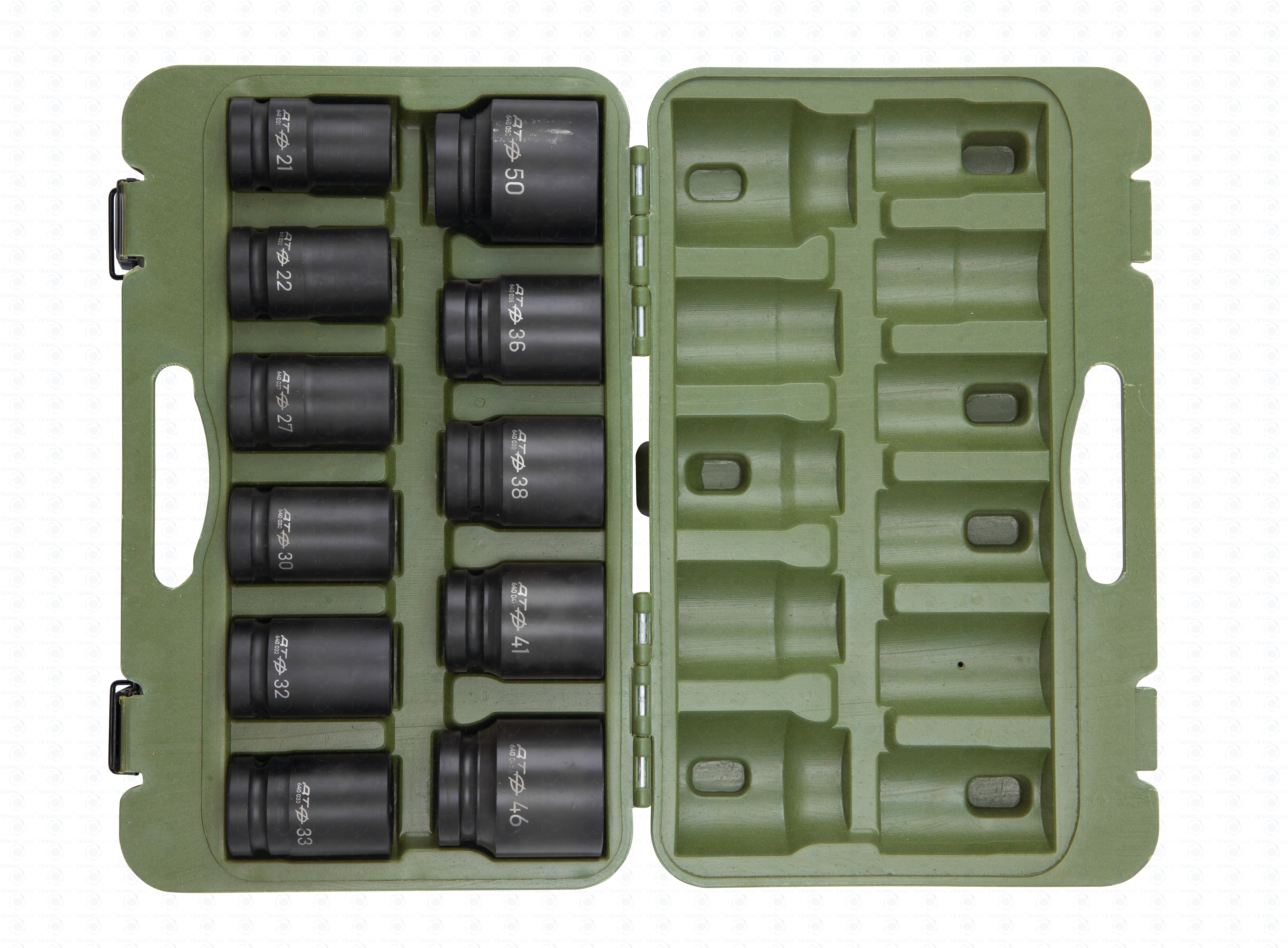 Набор торцевых головок для грузового гайковерта (11шт.) 4-гранные: 21, 22 мм; 6-гранные: 27, 30, 32, 33, 36, 38, 41, 46, 50 мм.