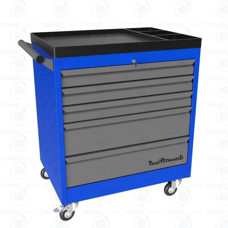 Тележки инструментальные серии PROFFI 795 предназначены для использования на предприятиях любого профиля занятых ремонтом и изготовлением различной продукции. Тележки изготовлены высотой 795 мм что позволяет размещать их под верстаками и рабочими столами серии PROFFI, что позволяет сэкономить рабочее пространство помещении. На боковые стенки инструментальной тележки нанесена перфорация размером 25х25 мм и диаметром отверстия 8 мм, что позволяет устанавливать на них навесной инструмент или крючки. Наибольшей популярностью тележки инструментальные пользуются в сфере авторемонта и обслуживания автомобилей. Тележки имеют выдвижные ящики на шариковых телескопических направляющих полного выдвижения с фиксацией в закрытом положении, предотвращающее открывание при передвижении тележки. Ящики имеют центральный замок, который позволяет ограничить доступ посторонних лиц к содержимому ящиков. Тележка инструментальная изготовлена из высококачественного металла ведущих Российских производителей, покрашена порошковой краской производства Германии, имеет итальянскую и турецкую фурнитуру. Тележки для инструмента оснащены двумя не поворотными колесами диаметром 100 мм, одним поворотным и одним поворотным со стопором, которое фиксирует тележку и предотвращает непроизвольное скатывание.