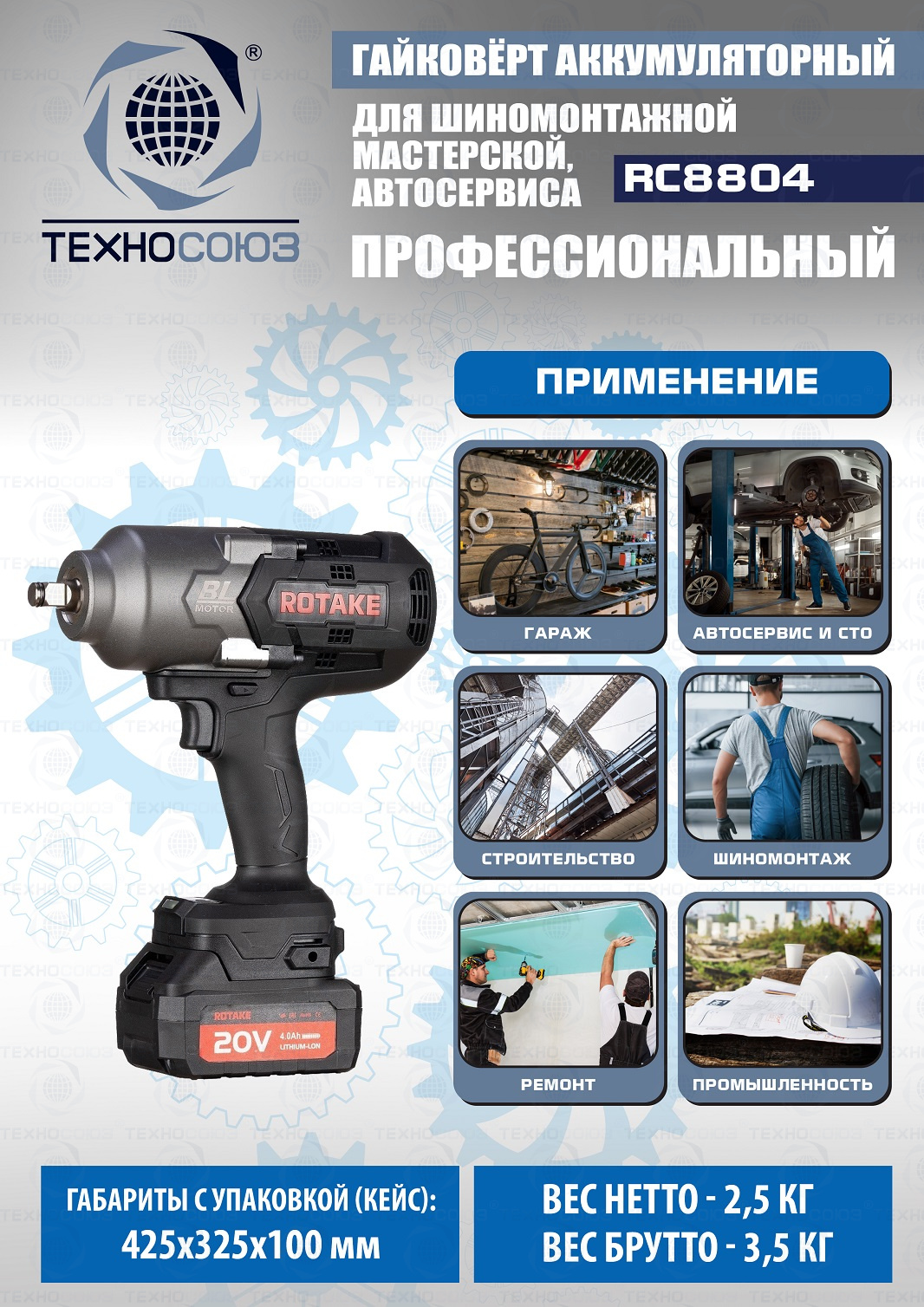 Технические особенности аккумуляторного ударного гайковерта RC8804: