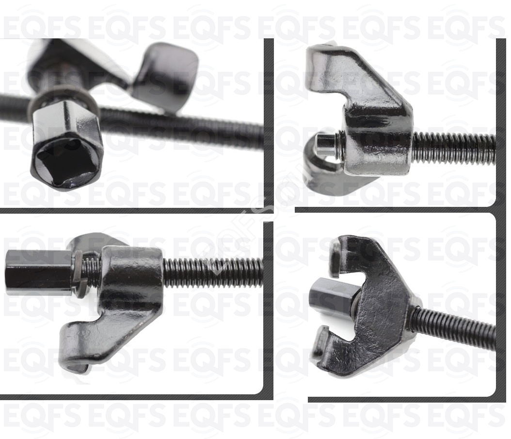 Винты с усиленной резьбой имеют шестигранный привод под ключ и квадрат под вороток 1/2’’. Подходит для использования в труднодоступных местах колесной ниши. Специальные раздвоенные концы предназначены для аккуратного захвата витков пружины. Максимальная длина захвата 380 мм.