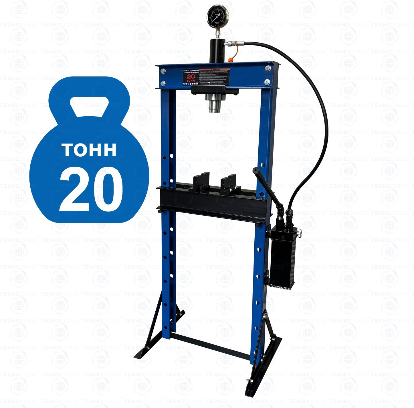 ·         Пресс укомплектован гидравлическим ручным насосом с максимальным  усилием 20т.