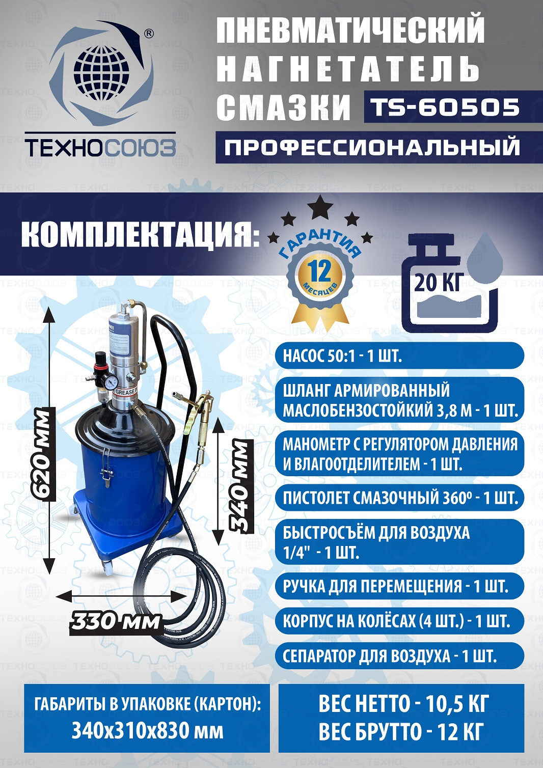 Технические особенности  TS-60505 пневматический нагнетатель смазки: